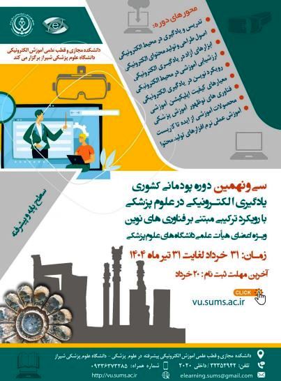 سی و نهمین دوره پودمانی کشوری یادگیری الکترونیکی در علوم پزشکی با رویکرد ترکیبی مبتنی بر فناوری های نوین (ویژه اعضای هیئت علمی دانشگاه های علوم پزشکی)