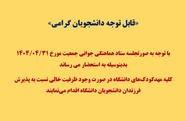 قابل توجه دانشجویان گرامی «پذیرش فرزندان دانشجویان در کلیه مهدکودکهای دانشگاه»