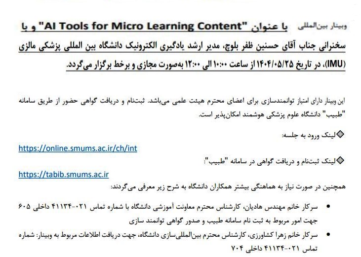 قابل توجه اعضای محترم هیئت علمی و دانشجویان «سومین و آخرین وبینار بین المللی در حوزه فناوری های نوین آموزشی»